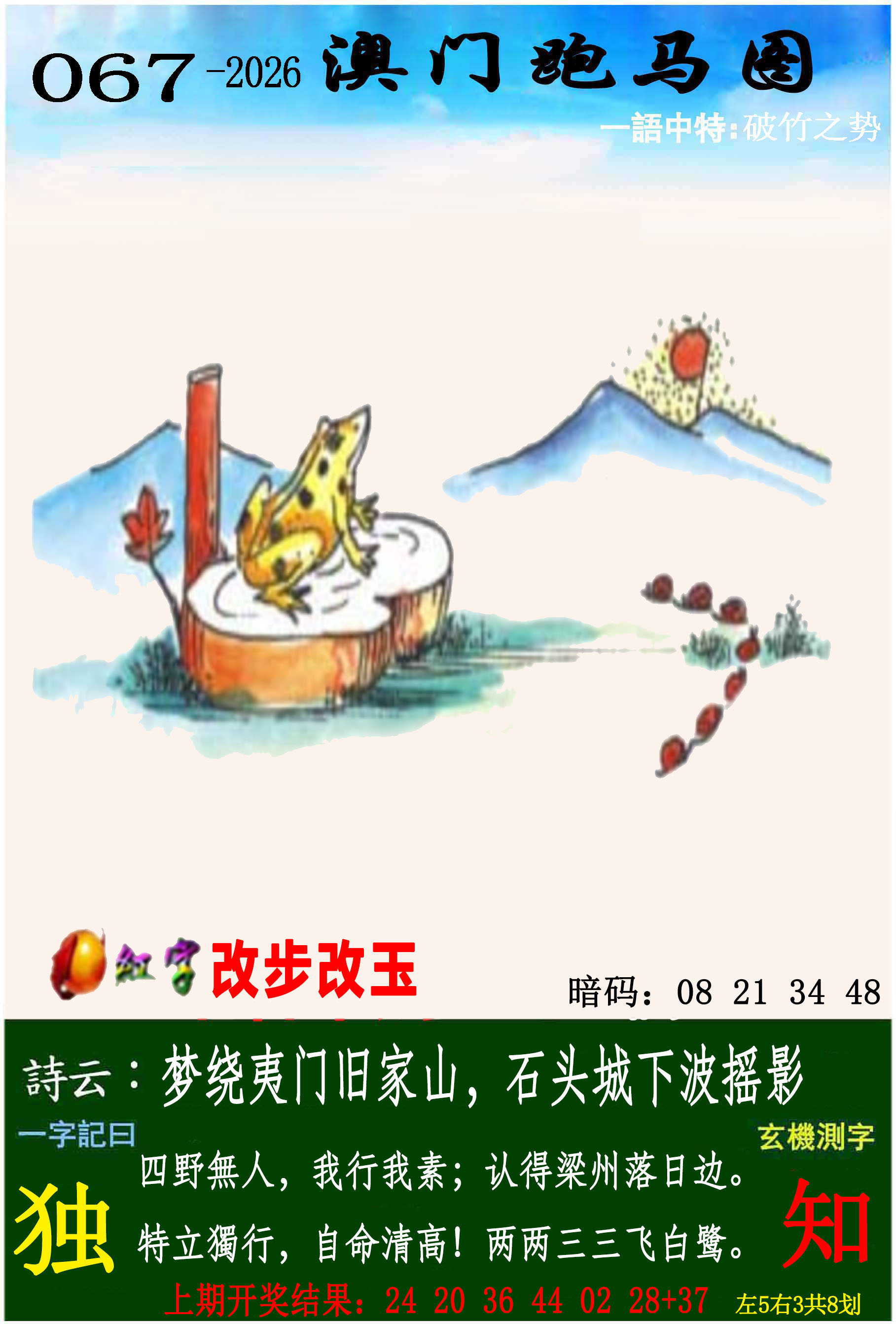 | 067期:单双中特→【双数】开?00准 |